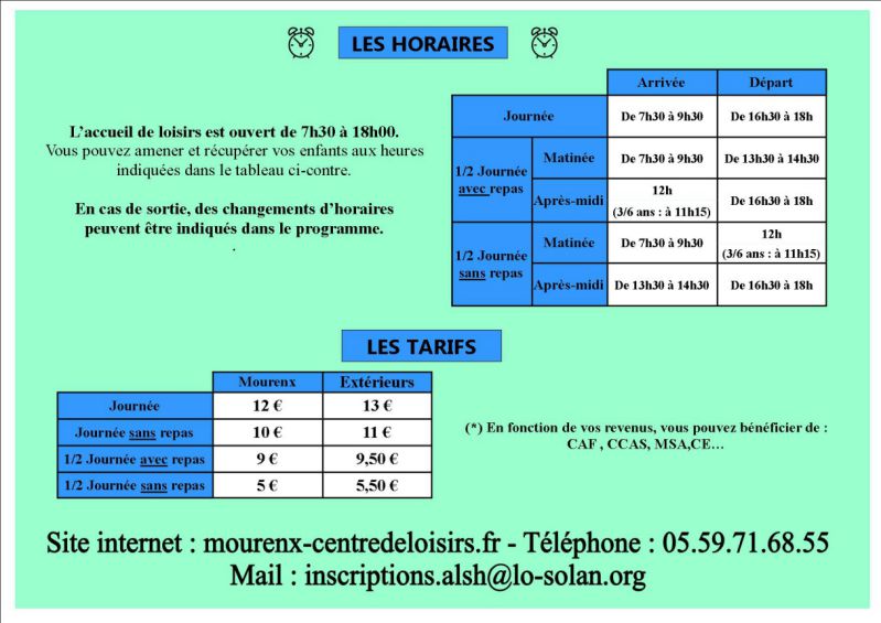 Mail inscriptions : inscriptions.alsh@lo-solan.org Autres demandes : alsh@lo-solan.org