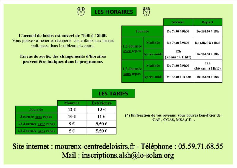 Mail inscriptions : inscriptions.alsh@lo-solan.org Autres demandes : alsh@lo-solan.org